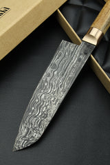 Blade: Hand forged damascus, 63 HRC, 180 mm