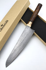 Blade: Hand forged damascus, 63 HRC, 215 mm