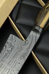 Blade: Hand forged damascus, 63 HRC, 220 mm