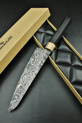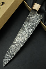 Blade: Hand forged damascus, 63 HRC, 215 mm