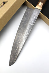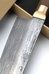Blade: Hand forged damascus, 63 HRC, 215 mm