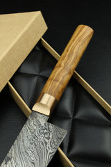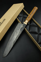 Blade: Hand forged damascus, 63 HRC, 215 mm