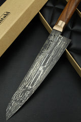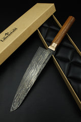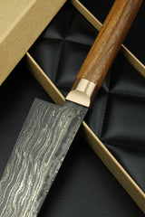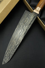 Blade: Hand-forged damascus, 63 HRC, 215mm.